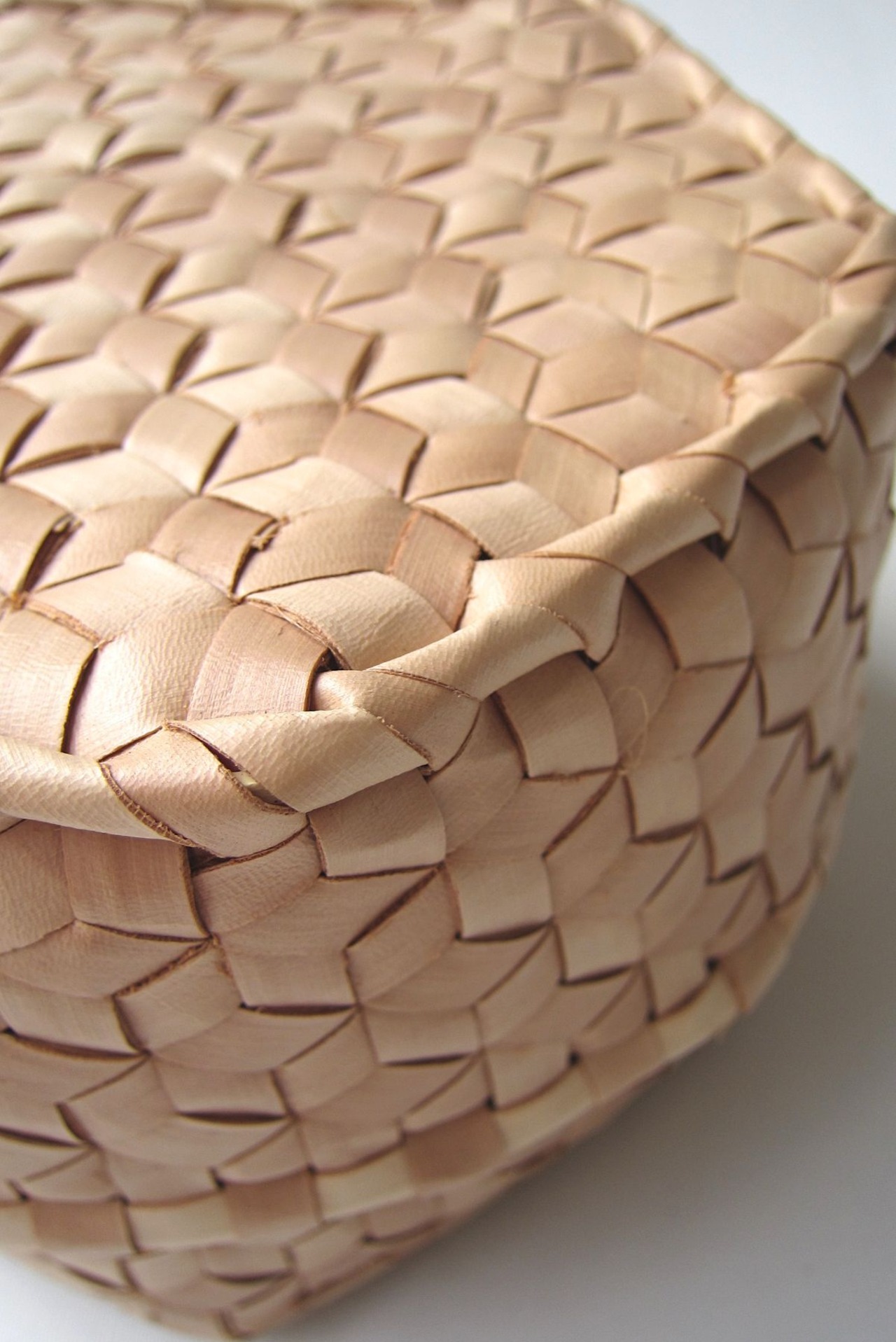 六角形の目が連なる編み目は、しっかりかたちを保って丈夫。また水にも強く、使い込むことで自然素材ならではの色味や風合いの変化が楽しめます。