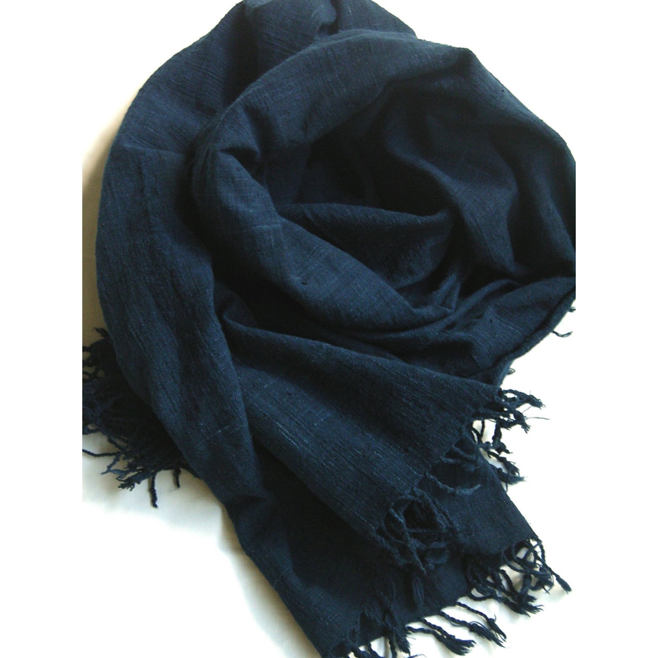 たっぷりとした幅に織り、藍染めのストールにしました。合わせやすく、季節も幅広く使え、1枚あると便利。