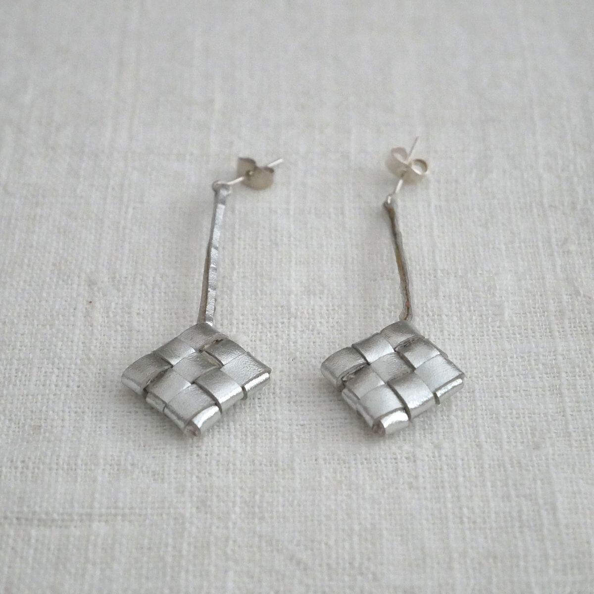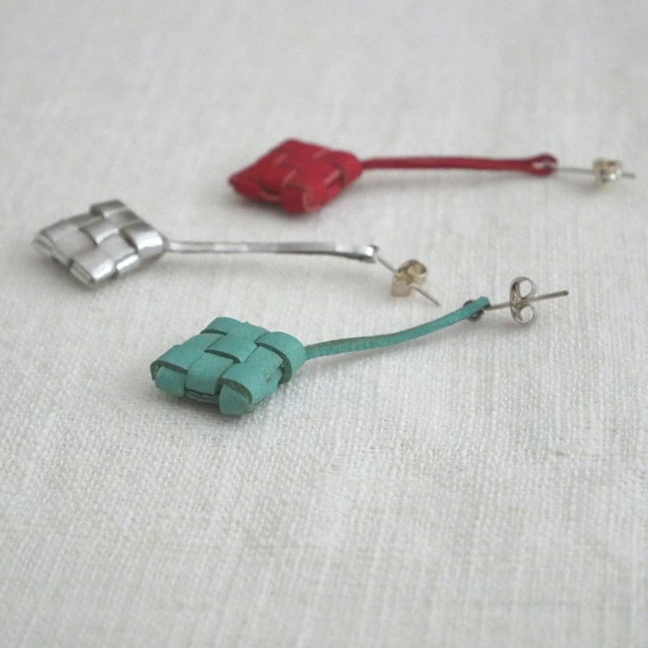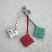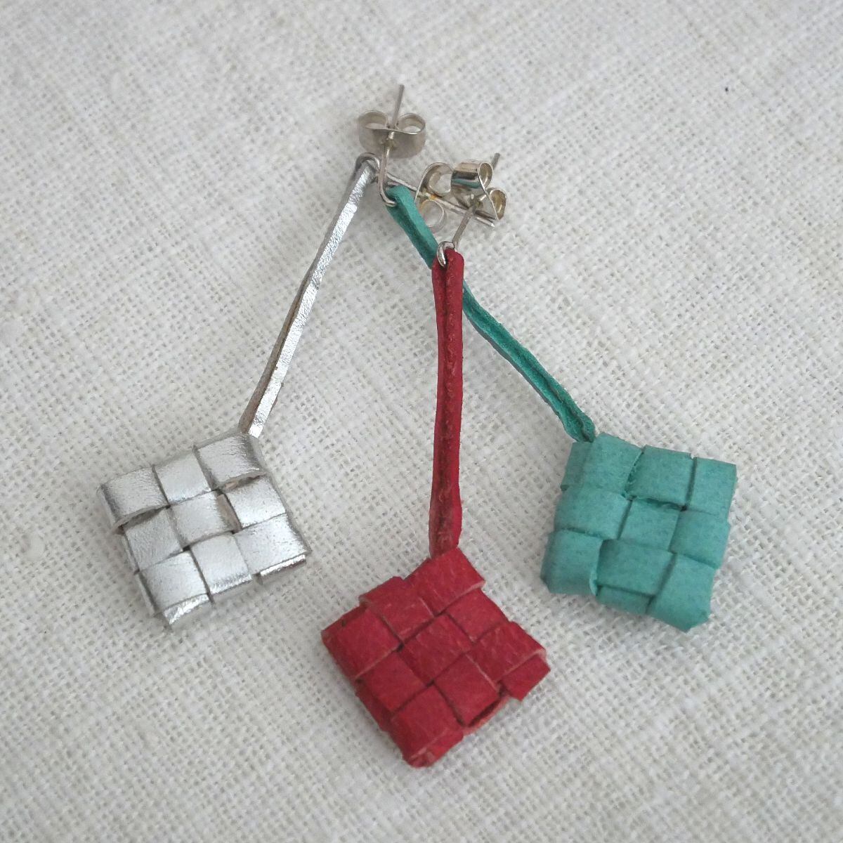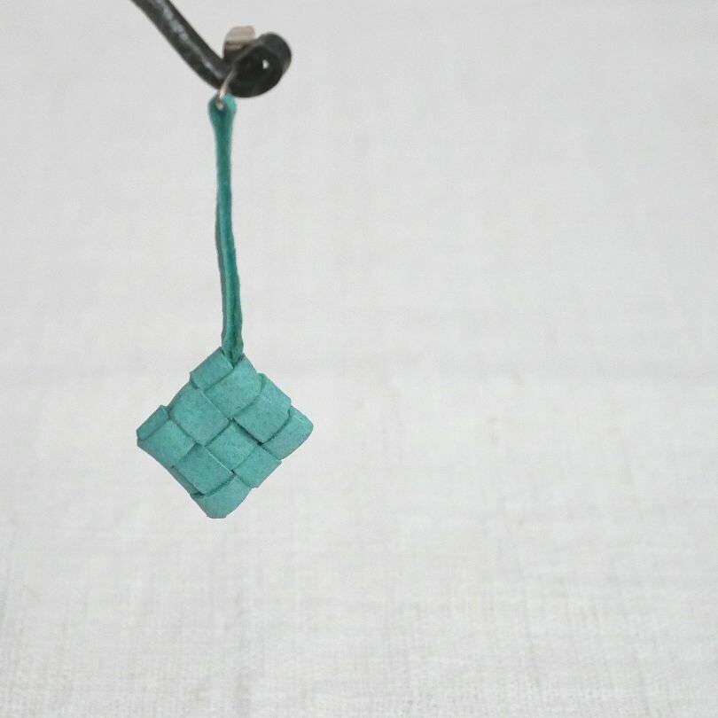 バリ島のウブドにある、手作りの革製品とアクセサリーのお店「nanan」から、ユニークなデザインのピアスをお届けします。この形は、椰子の葉を編んだカゴの中に、お米を入れて蒸したちまき「クトゥパット(またはティパット)」がモチーフ。山羊革のハギレを活用して編んだ小さなクトゥパットがかわいく揺れます。