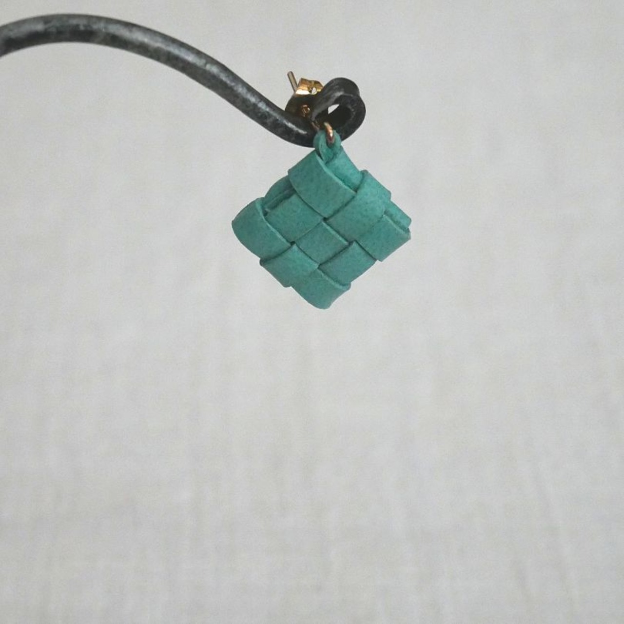 バリ島のウブドにある、手作りの革製品とアクセサリーのお店「nanan」から、ユニークなデザインのピアスをお届けします。この形は、椰子の葉を編んだカゴの中に、お米を入れて蒸したちまき「クトゥパット(またはティパット)」がモチーフ。山羊革のハギレを活用して編んだ小さなクトゥパットがかわいく揺れます。