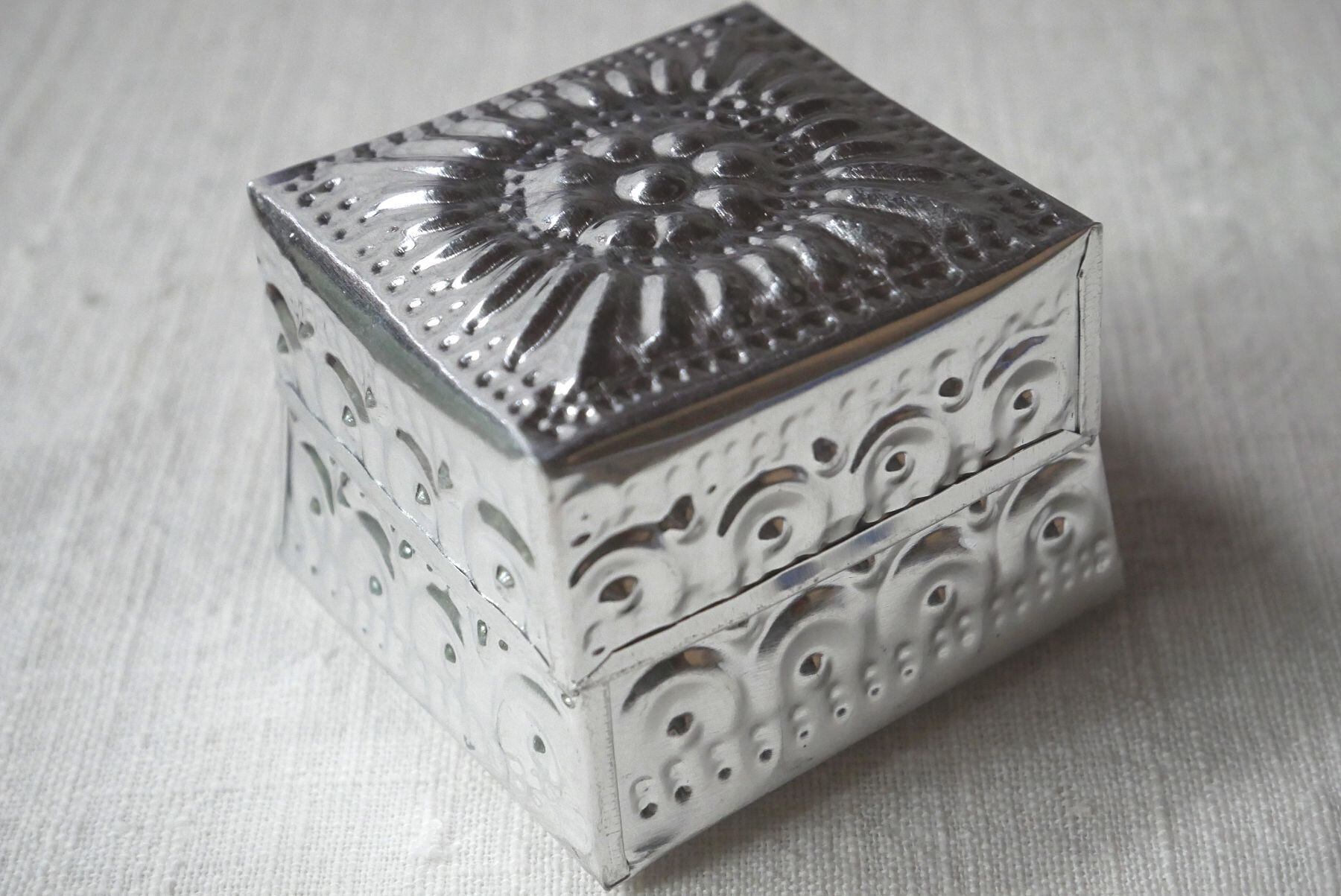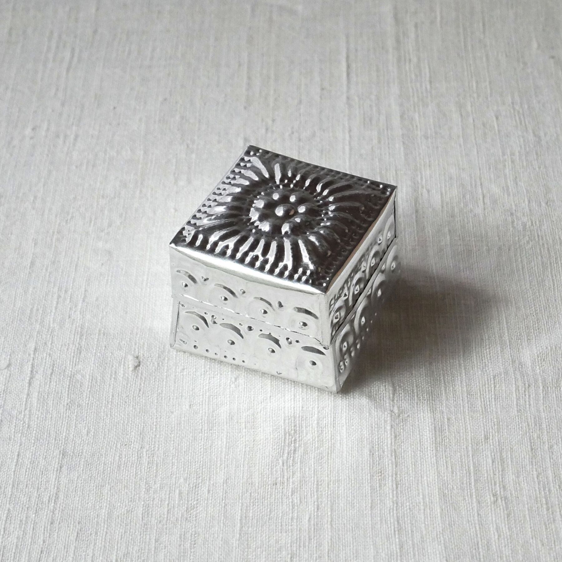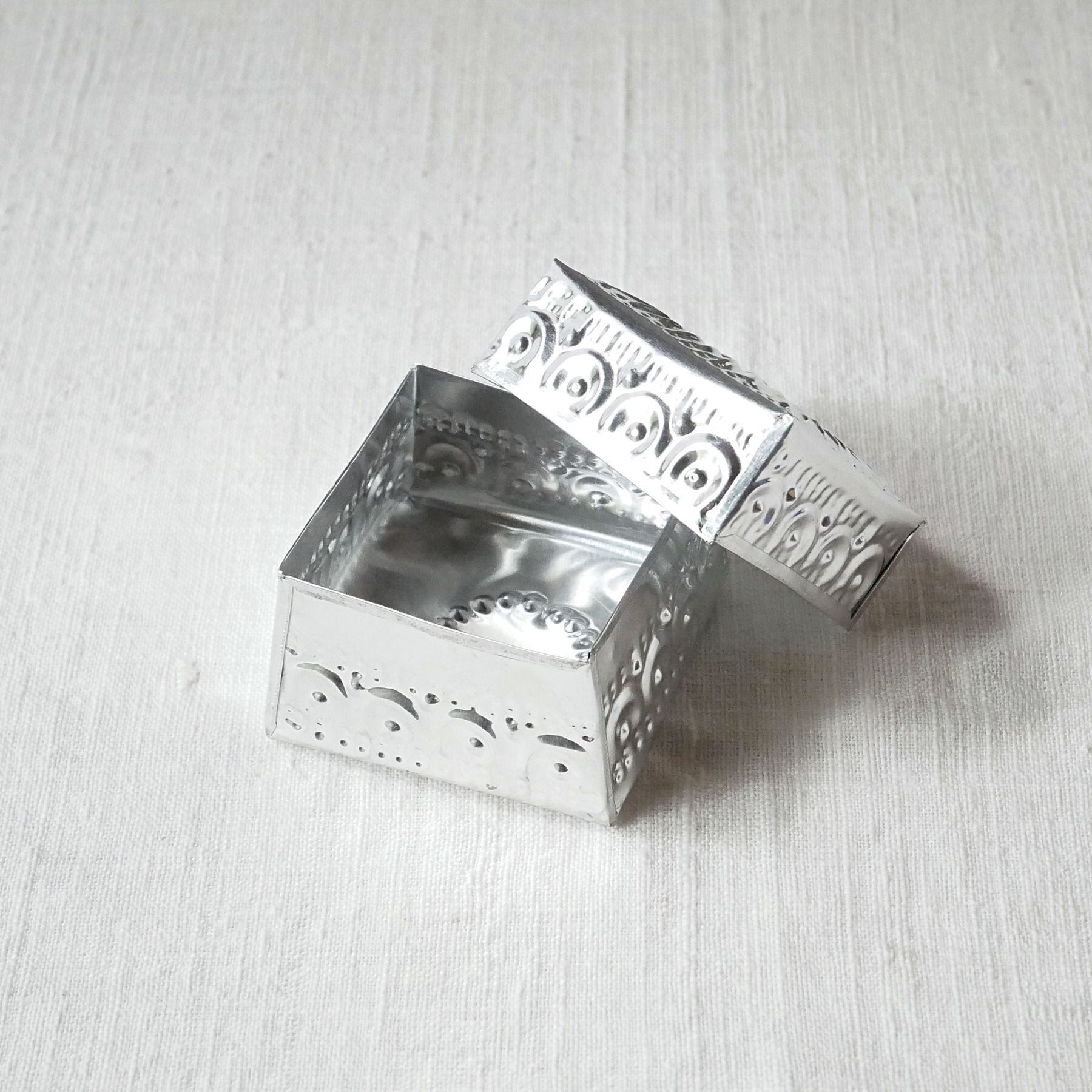 バリ島らしい模様が型押しされたアルミ製の箱。光沢がお洒落な印象と相まって、素朴な作りに温かみがあり、天然素材との組み合わせても馴染みます。こまごました物の整理に。またギフトボックスとしても喜ばれそうです。