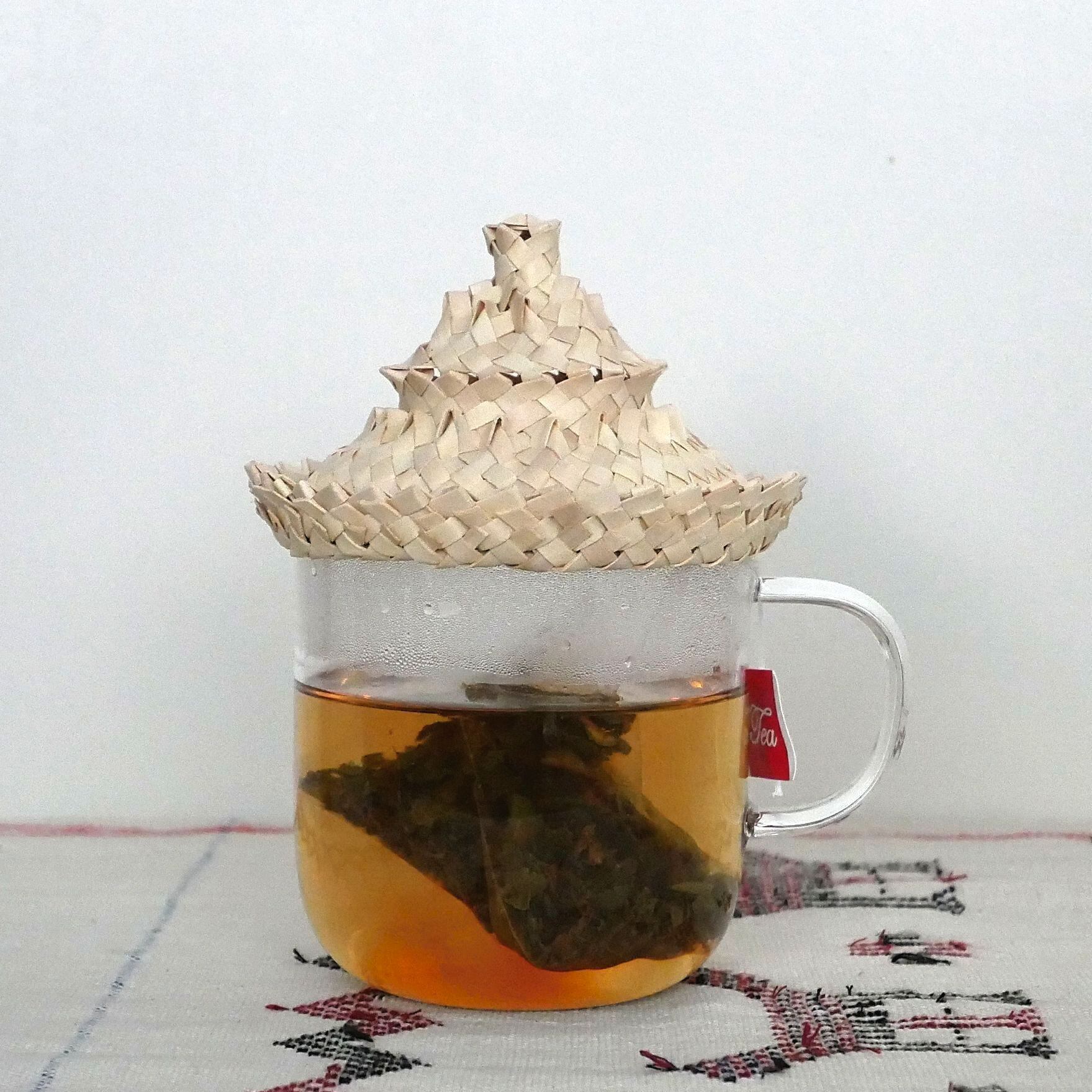 こちらの小さいサイズは、グラスやカップにちょうどいい大きさ。インドネシアでも、お茶やコーヒーに蓋をしている様子がよく見られますが、おもてなしの際、温かい飲み物に添えたら楽しいかも。また小さな器にちょっと蓋をしたい時など、いかがでしょうか。