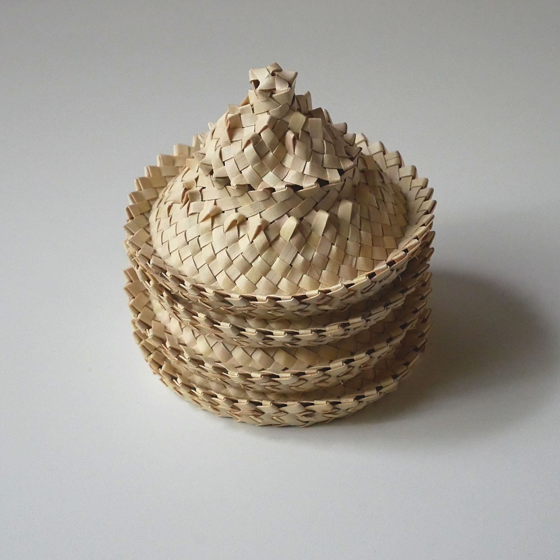 ロンタル椰子の葉で作られた、帽子のような、ちょっと面白い形をしたこれは、バリ島でさまざまなものの蓋として利用されているサーブ/Saabです。祭礼が多いバリ島では、お供え物の上によく置かれています。