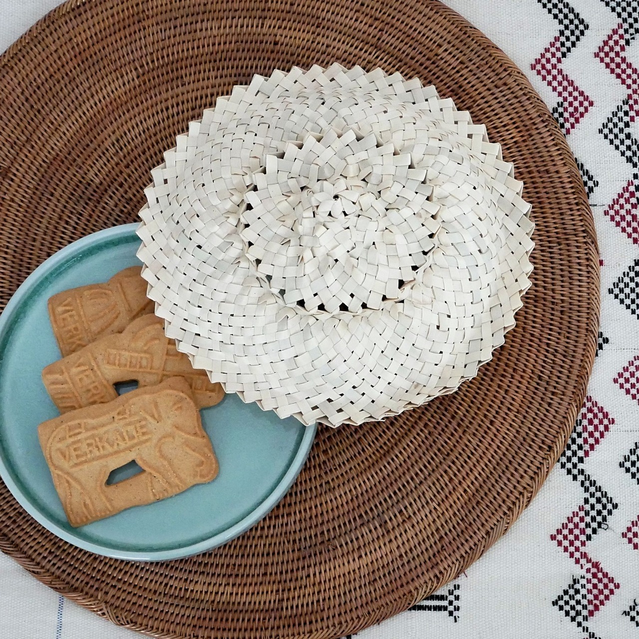 カゴや器などのちょっとした蓋として使えます。おもてなしの際、お菓子のお皿などに添えてみたら楽しいかも。